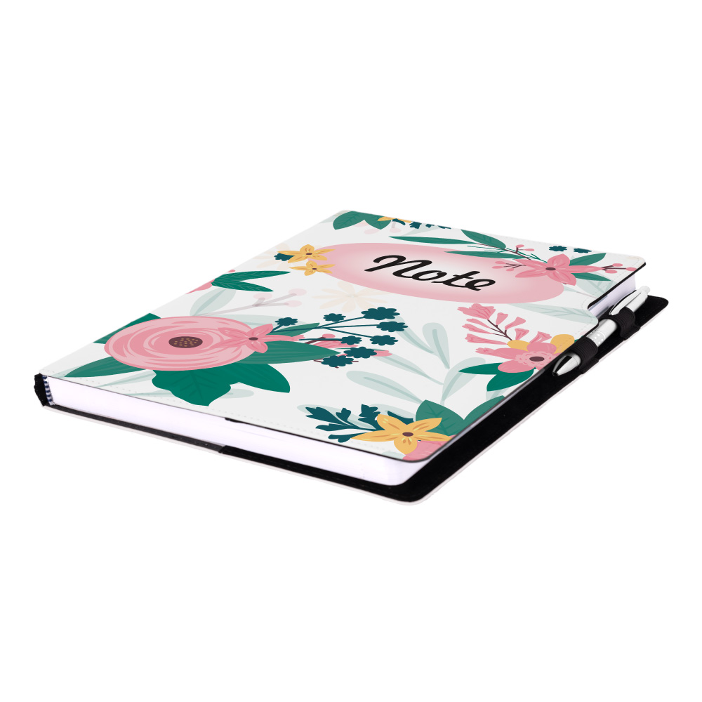 Súčasťou notesu je pútko pre pero a kovová propiska.
