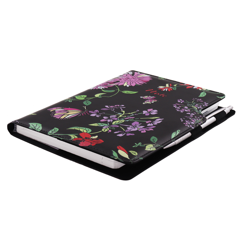 Súčasťou notesu je pútko pre pero a kovová propiska.