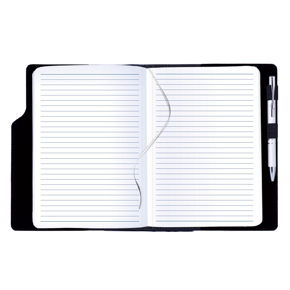 Súčasťou notesu je pútko pre pero a kovová propiska.