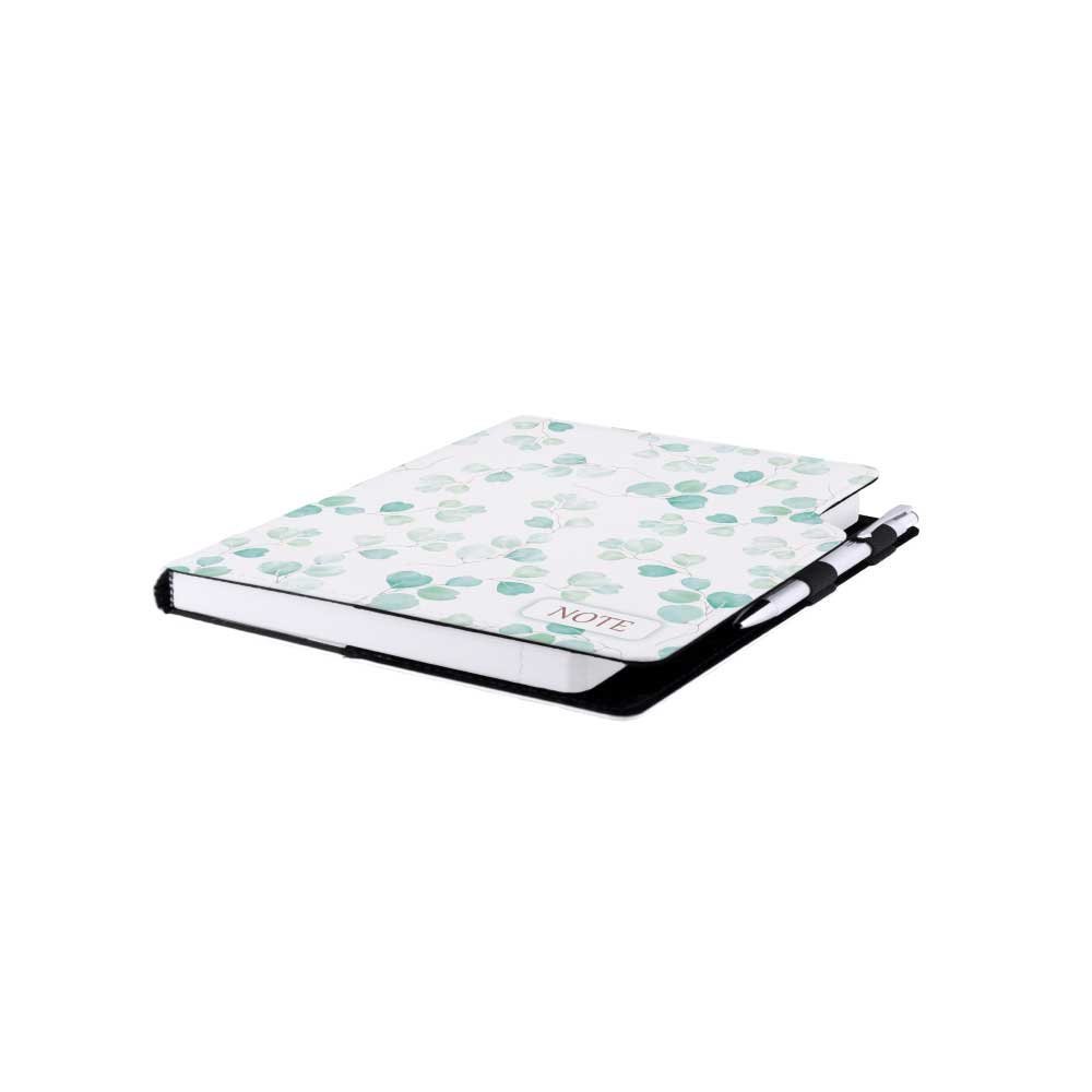Súčasťou notesu je pútko pre pero a kovová propiska.