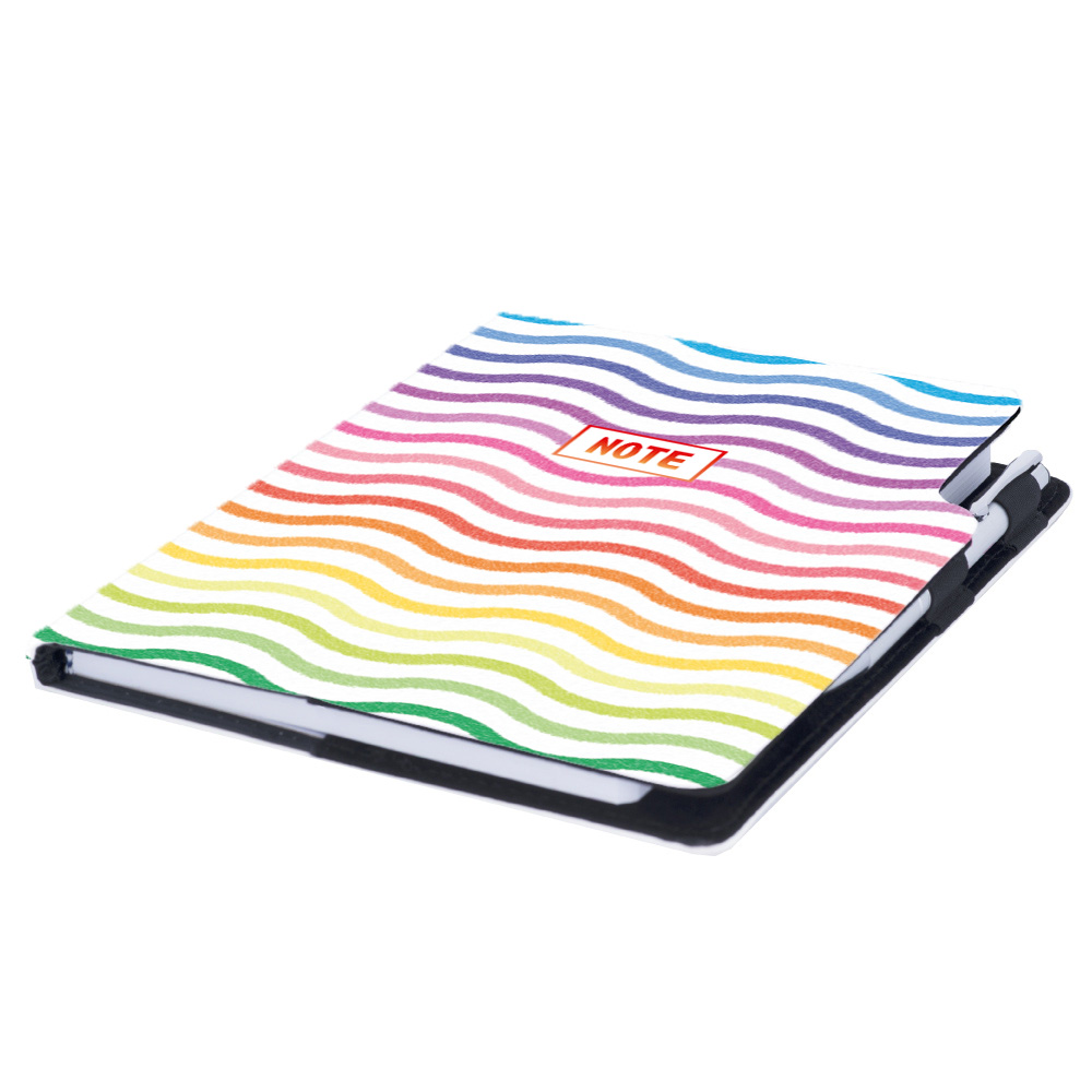 Súčasťou notesu je pútko pre pero a kovová propiska.
