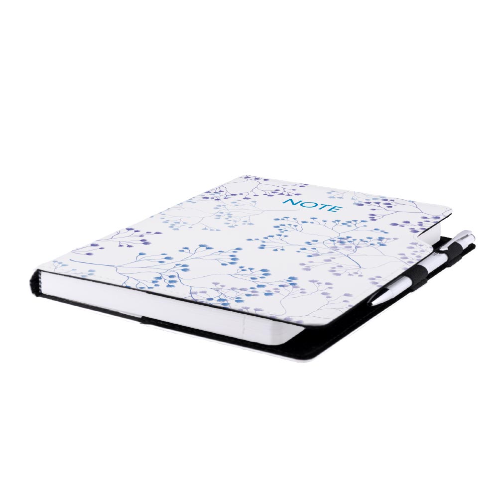 Súčasťou notesu je pútko pre pero a kovová propiska.