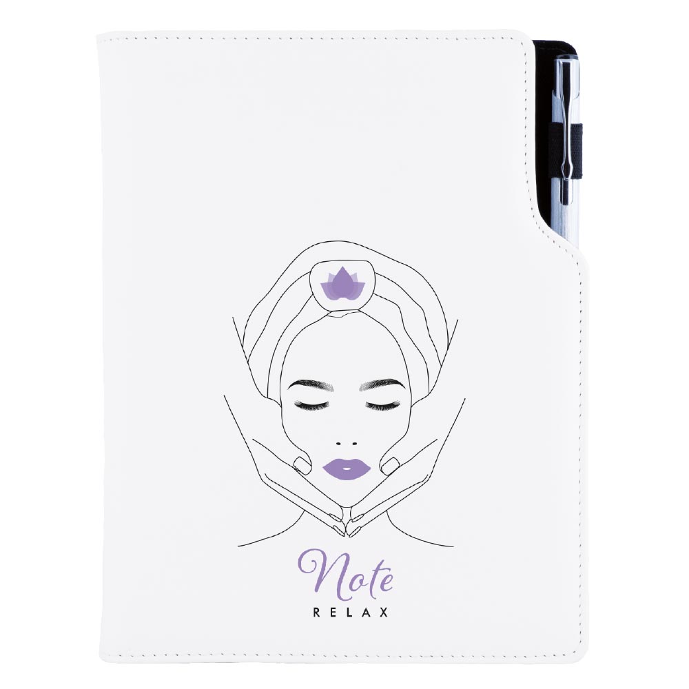 Súčasťou notesu je pútko pre pero a kovová propiska.