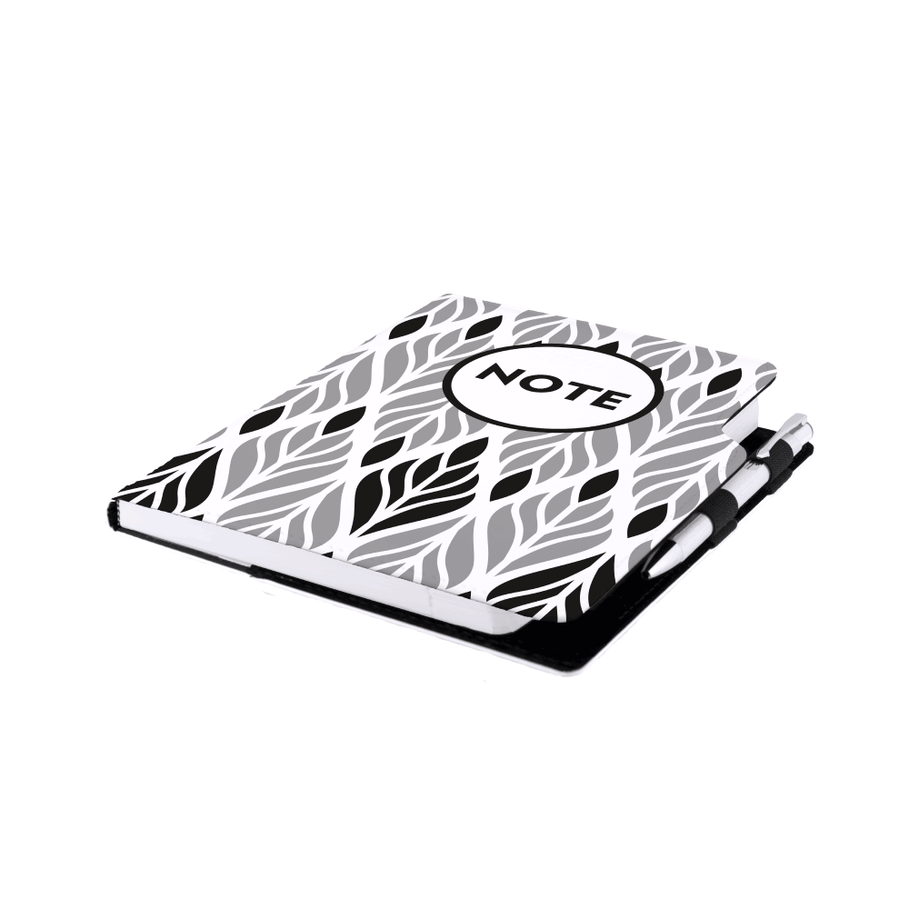 Súčasťou notesu je pútko pre pero a kovová propiska.