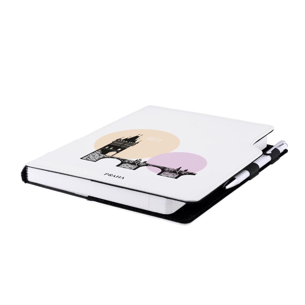 Súčasťou notesu je pútko pre pero a kovová propiska.