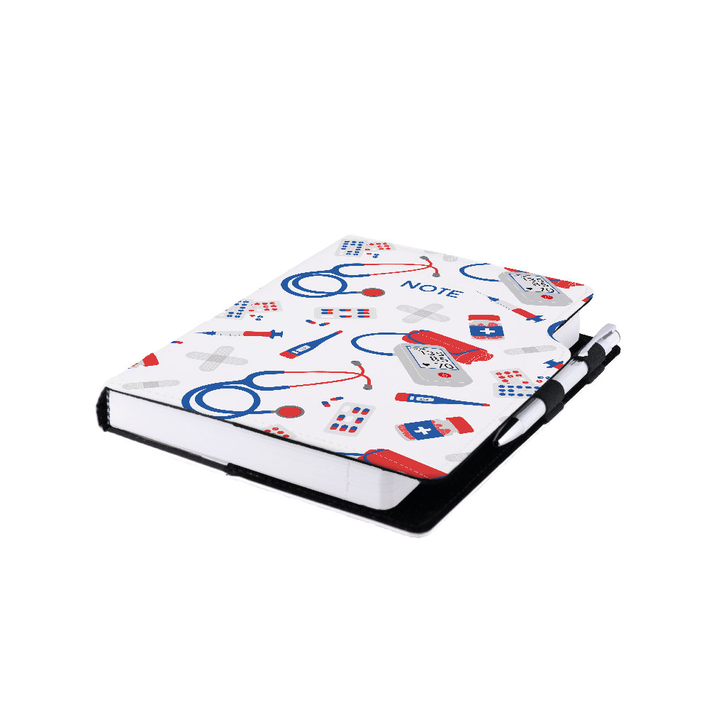 Súčasťou notesu je pútko pre pero a kovová propiska.