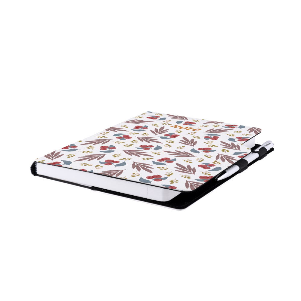 Súčasťou notesu je pútko pre pero a kovová propiska.