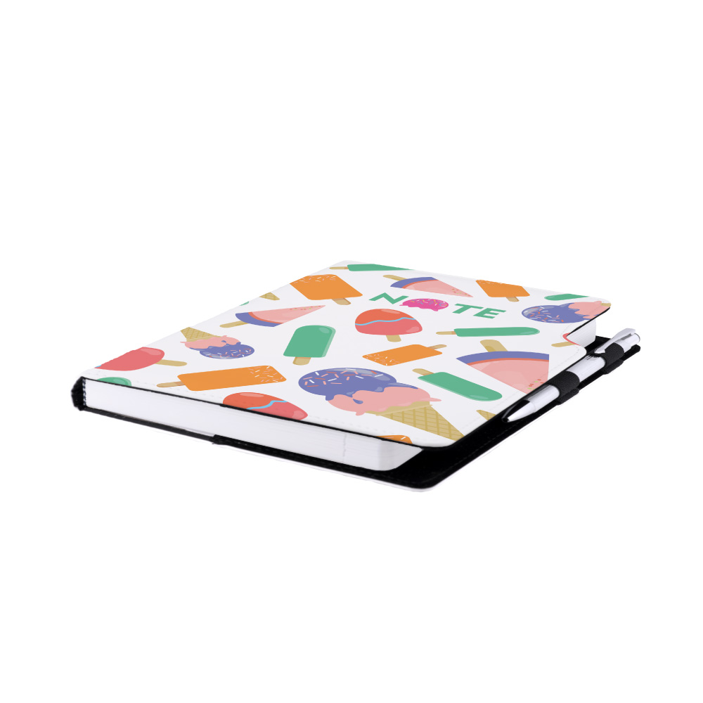 Súčasťou notesu je pútko pre pero a kovová propiska.