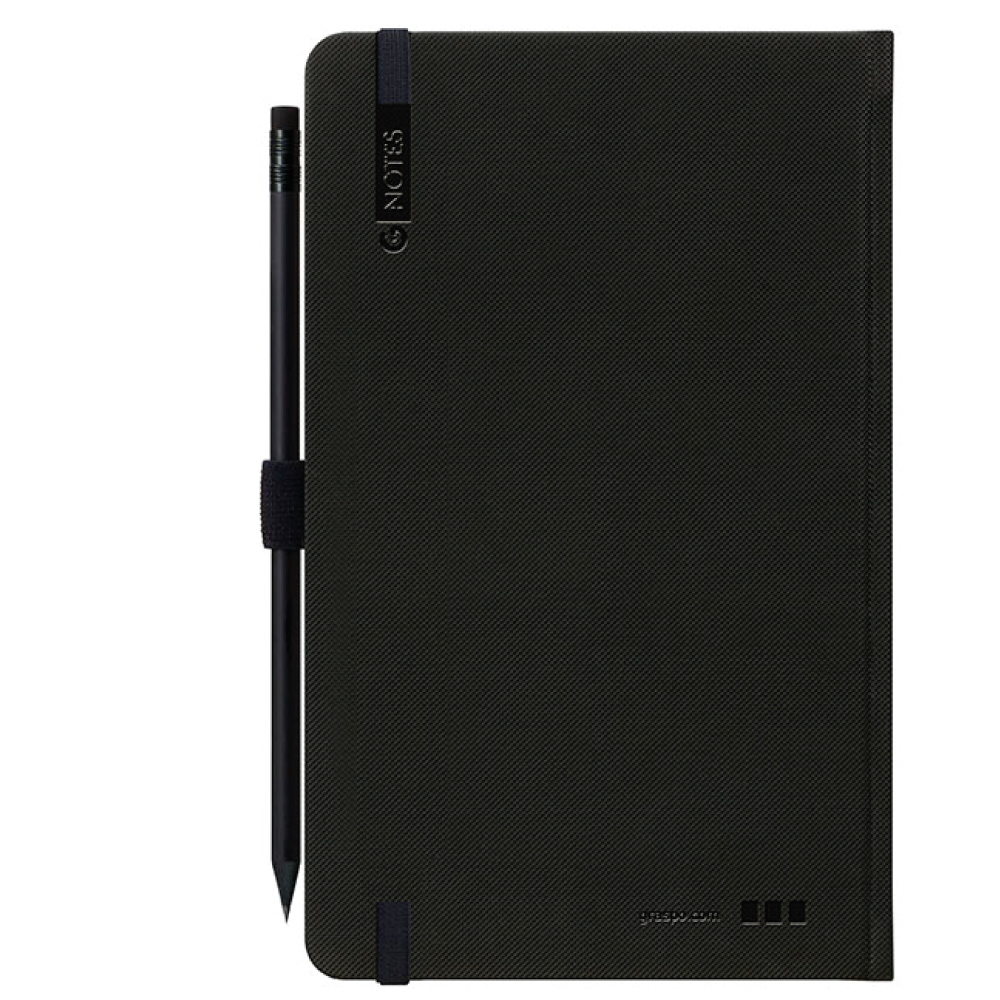 Notes obsahuje gumičku na zatváranie, papierovú kapsu,
