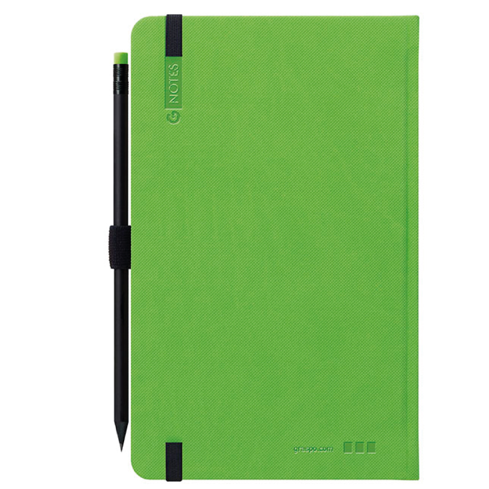Notes obsahuje gumičku na zatváranie, papierovú kapsu,