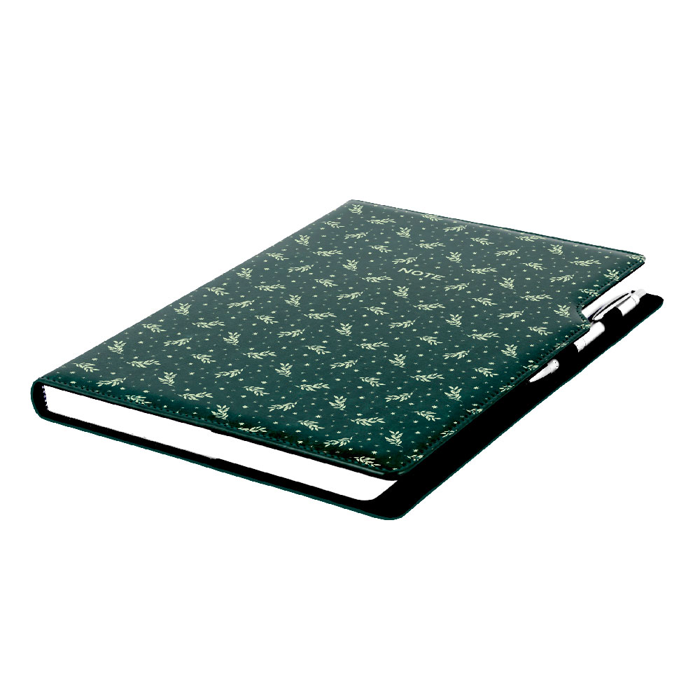 Súčasťou notesu je pútko pre pero a kovová propiska.