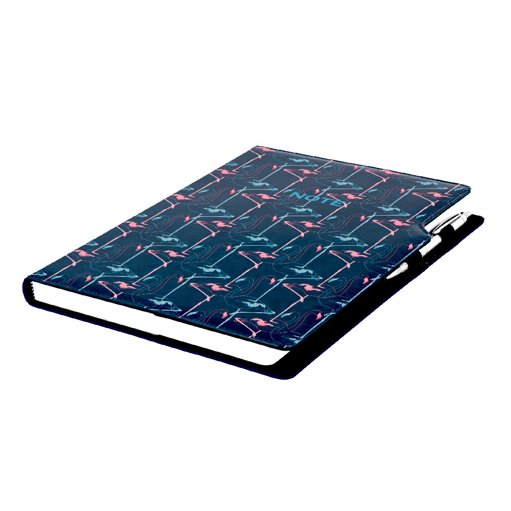 Súčasťou notesu je pútko pre pero a kovová propiska.