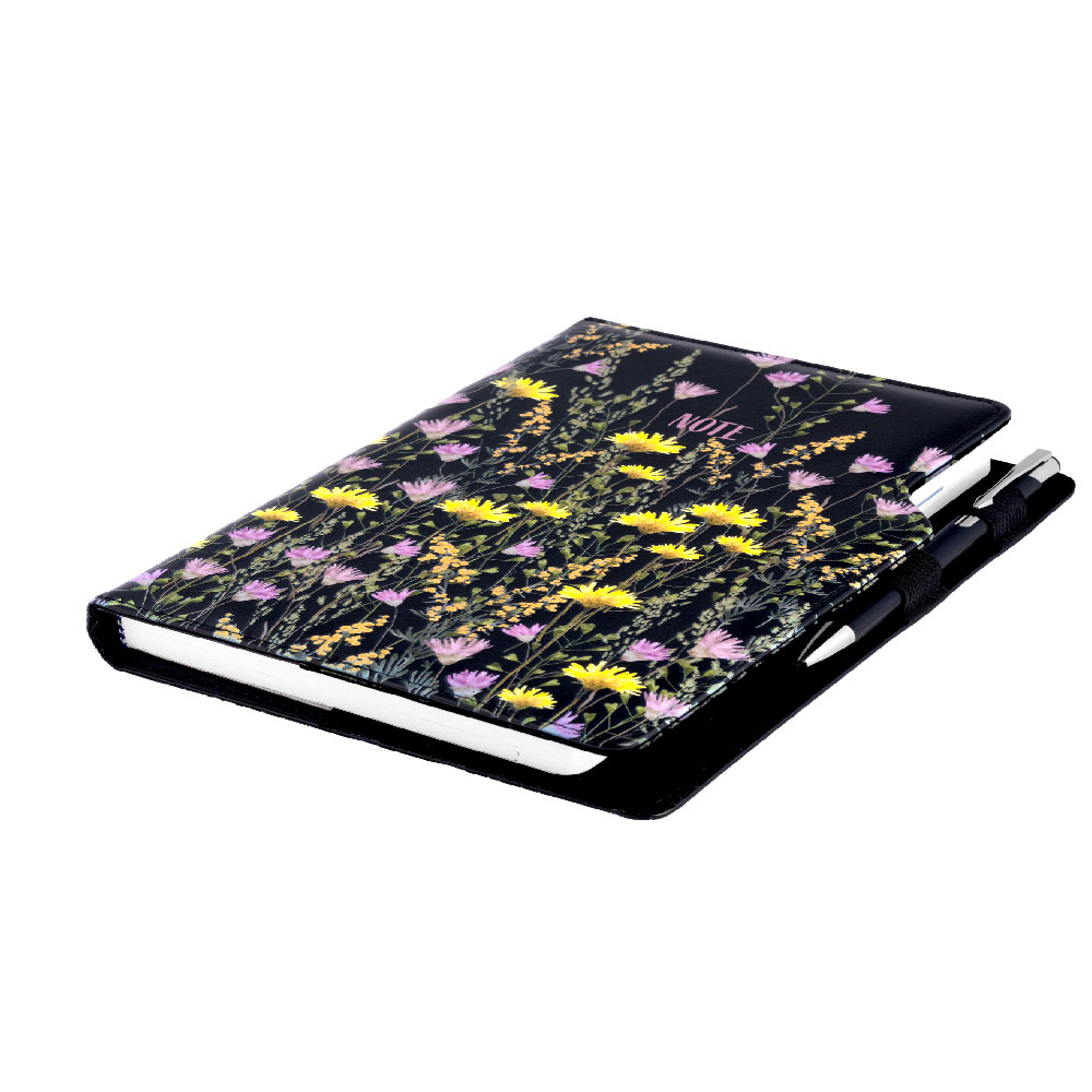 Notes - zápisník DESIGN B5 čistý - čierna - kvety