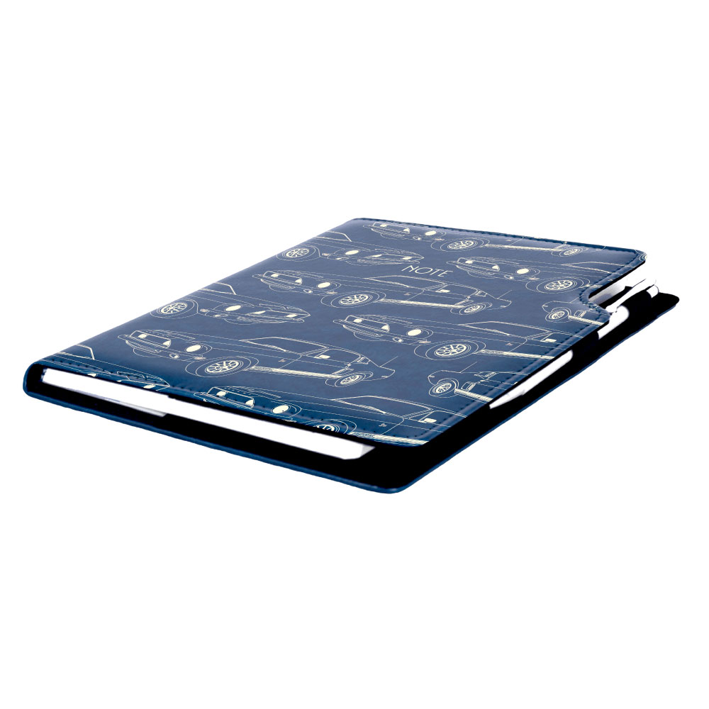 Súčasťou notesu je pútko pre pero a kovová propiska.