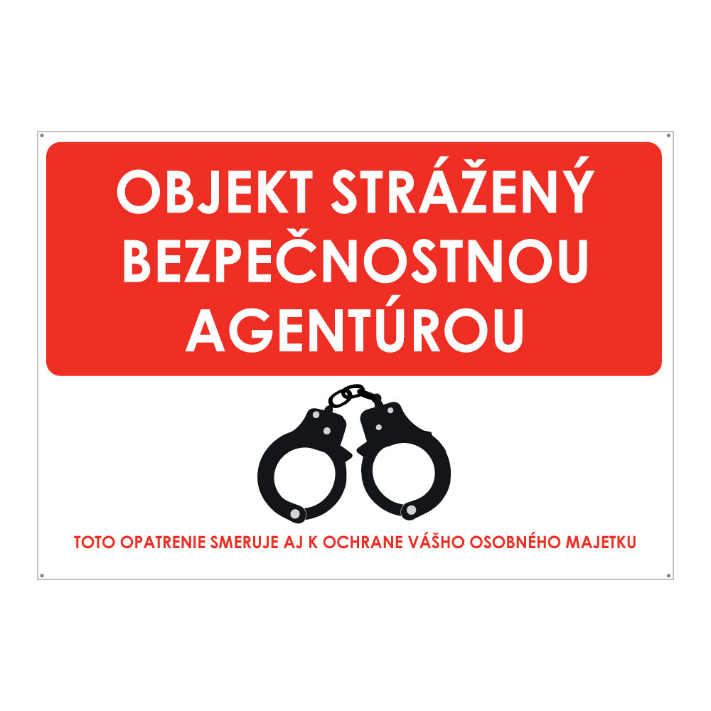 Objekt strážený bezpečnostnou agentúrou, plast 2mm s dierkami-210x148mm
