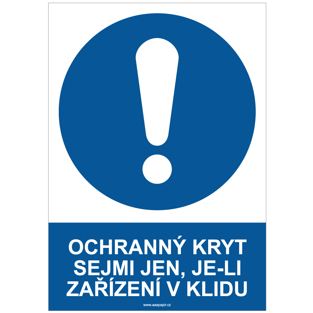 OCHRANNÝ KRYT SEJMI JEN, JE-LI ZAŘÍZENÍ V KLIDU - bezpečnostní tabulka, plast A4, 2 mm