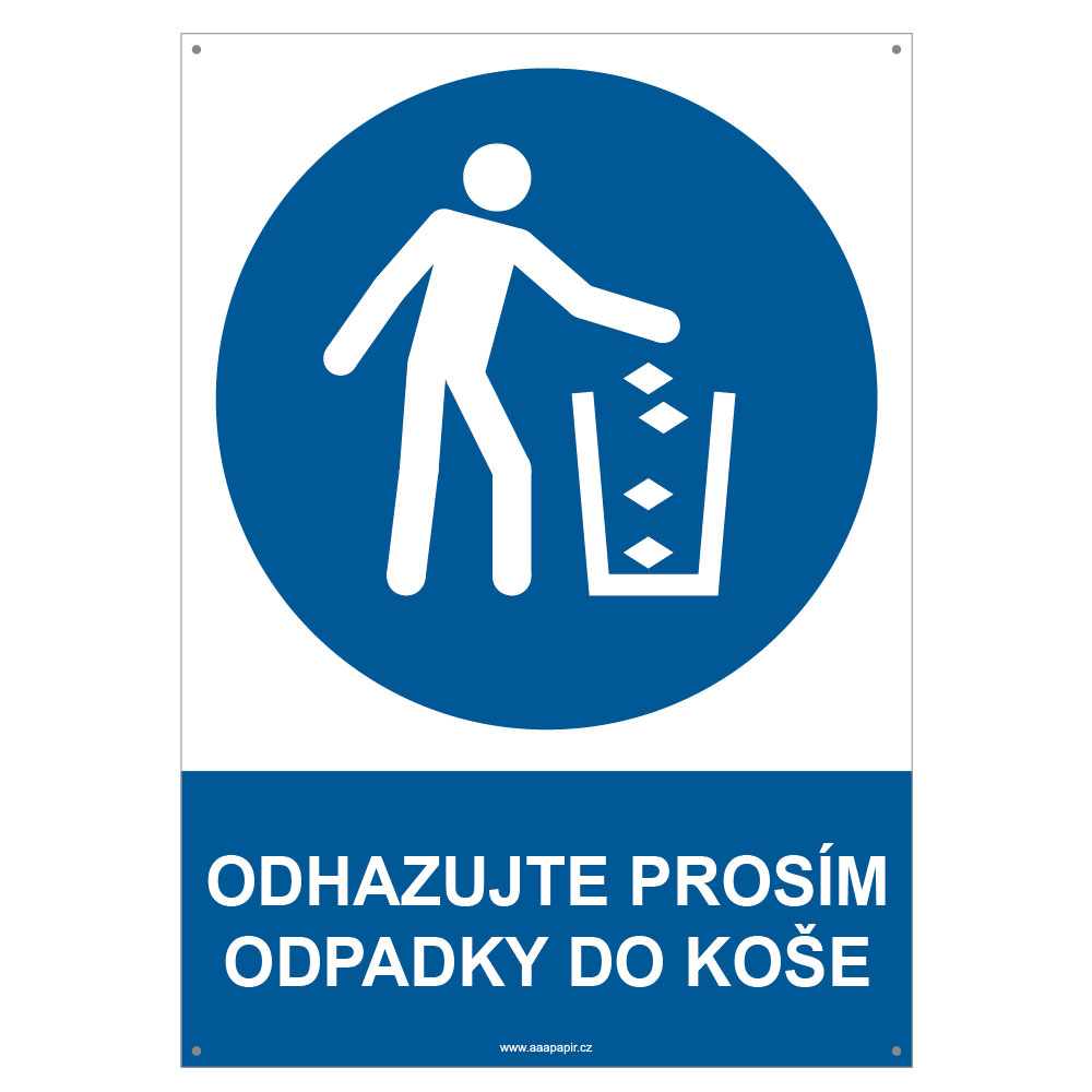 ODPADKY PROSÍM ODHAZUJTE DO KOŠE - bezpečnostní tabulka s dírkami, plast A4, 2 mm