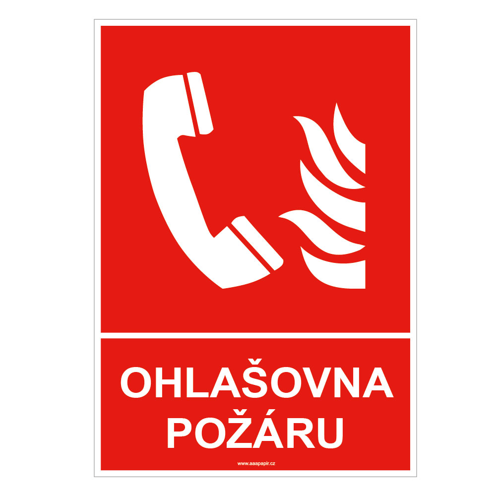 Ohlašovna požáru s textem - bezpečnostní tabulka, samolepka 105x148 mm