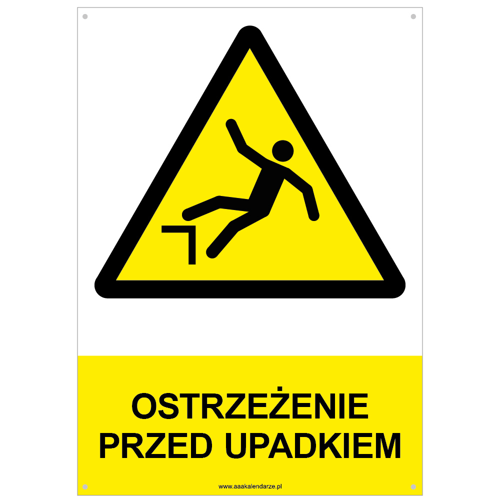 OSTRZEŻENIE PRZED UPADKIEM - znak BHP z dziurkami, płyta PVC A4, 2 mm