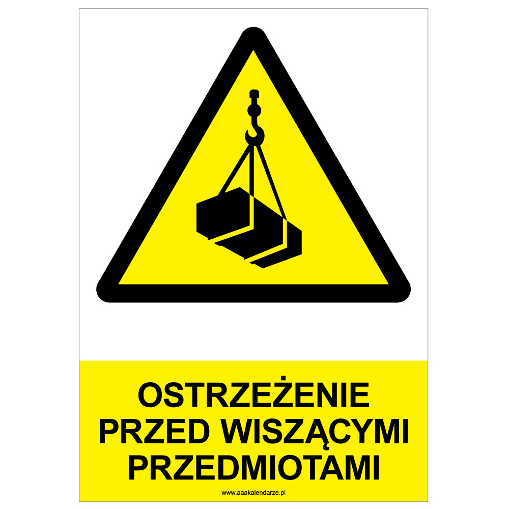 OSTRZEŻENIE PRZED WISZĄCYMI PRZEDMIOTAMI - znak BHP, płyta PVC A4, 2 mm