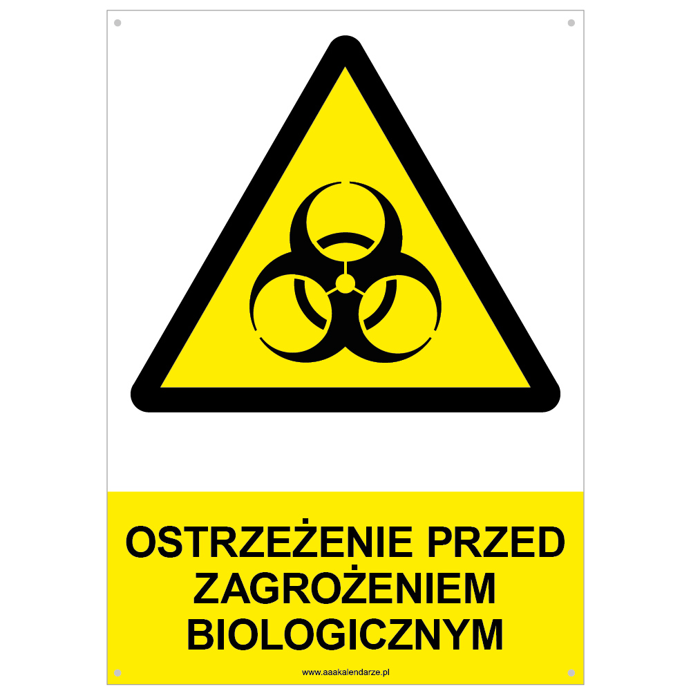 OSTRZEŻENIE PRZED ZAGROŻENIEM BIOLOGICZNYM - znak BHP z dziurkami, płyta PVC A4, 2 mm