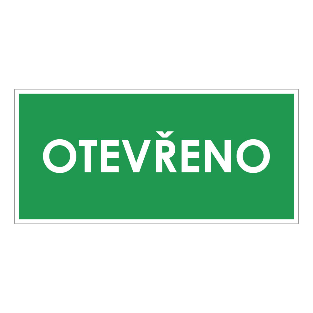 OTEVŘENO, červená, samolepka, 190x90 mm