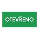 OTEVŘENO, plast 2 mm s dírkami 190x90 mm