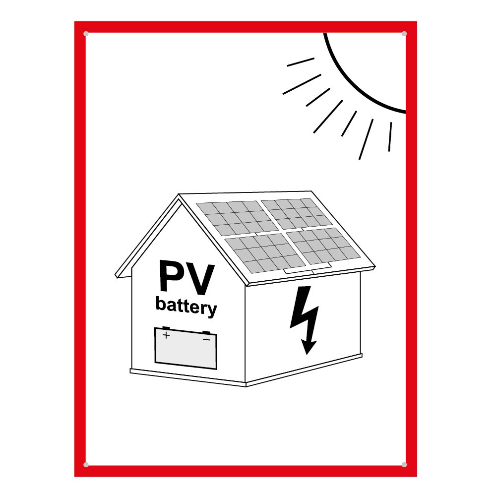 Označenie FVE na budove s batériou - PV symbol - bezpečnostná tabuľka, plast 2 mm s dierkami (A6) 105 x 148 mm