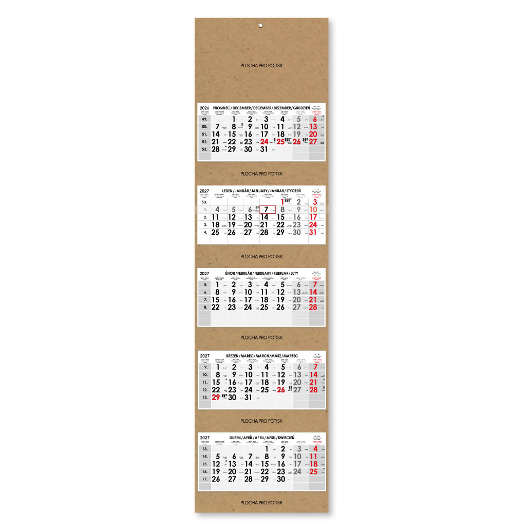 Formát kalendária: 295 x 135 mm