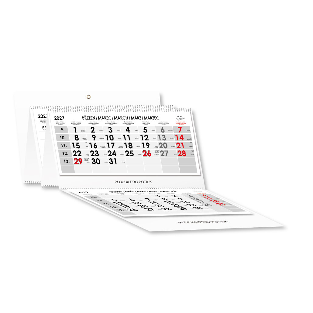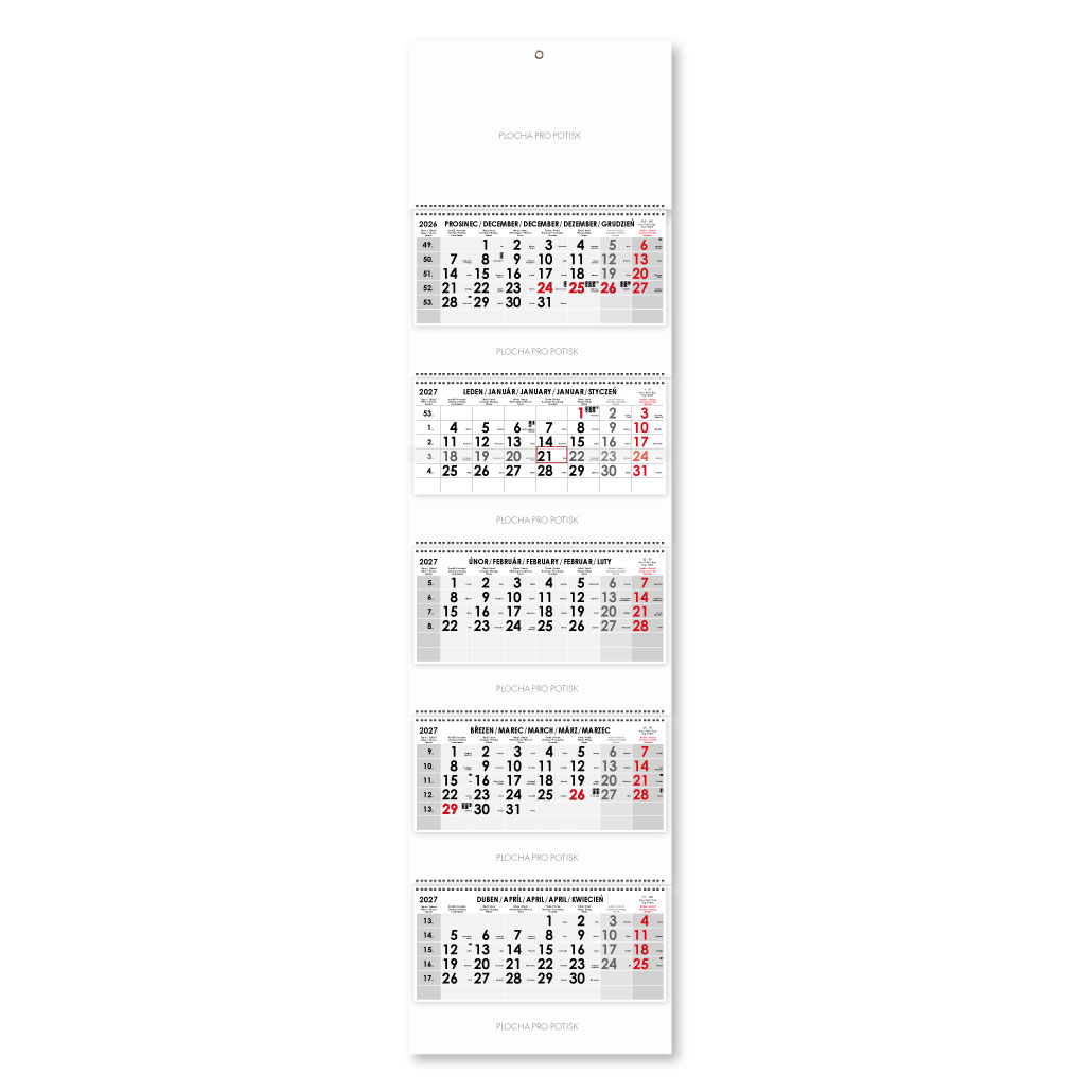 Päťmesačný kalendár Kvinto skládaný český so špirálou 2027 - sivý