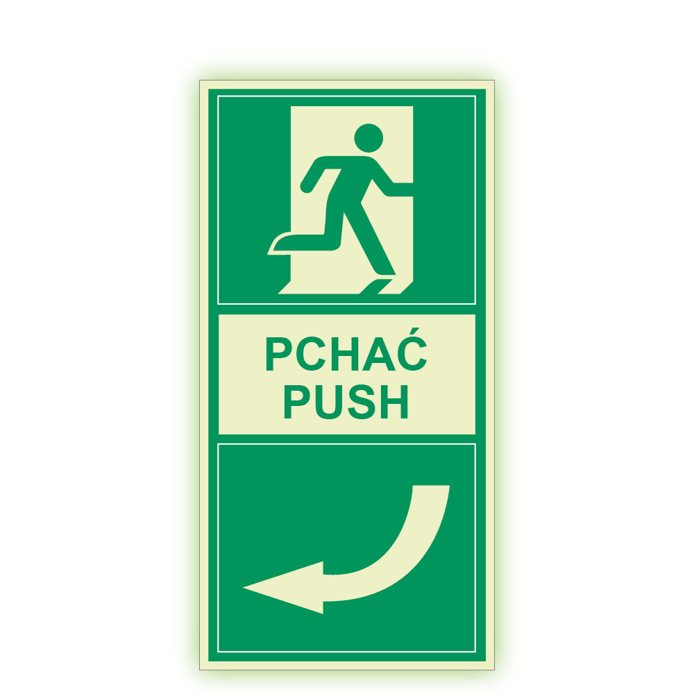 Pchać w lewo - fotoluminescencyjny znak, płyta PVC 1 mm 200x100 mm