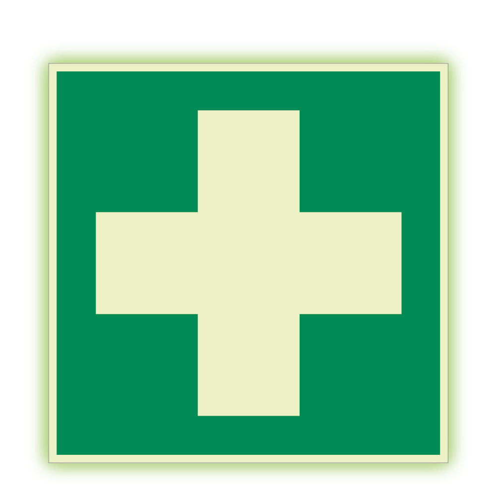 Pierwsza pomoc - apteczka- fotoluminescencyjny znak, płyta PVC 1 mm 150x150 mm