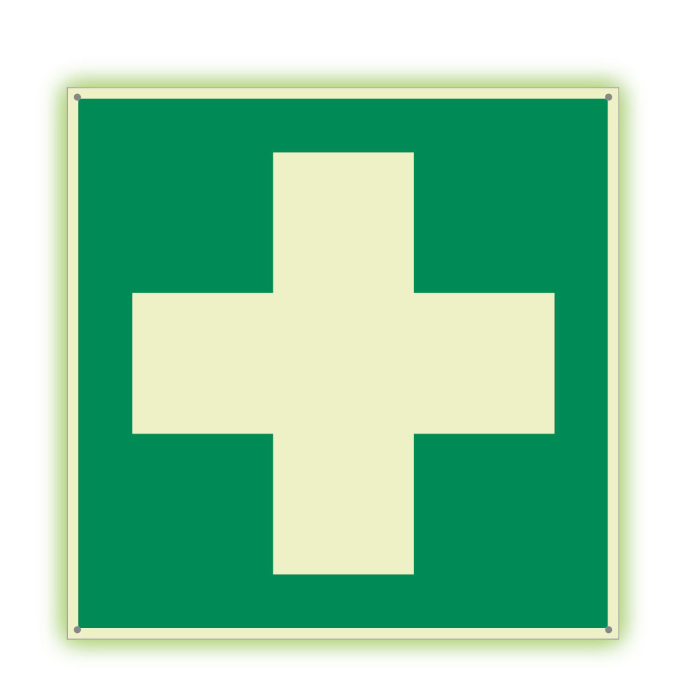 Pierwsza pomoc - apteczka- fotoluminescencyjny znak, płyta PVC 1 mm 200x200 mm