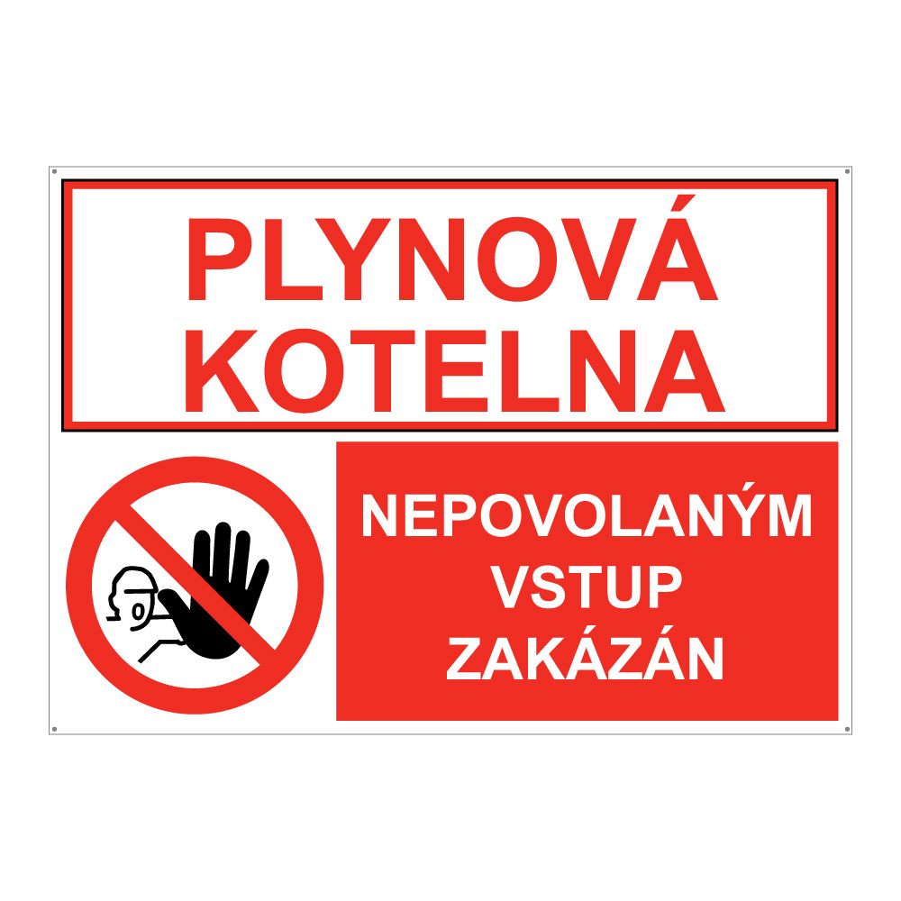 PLYNOVÁ KOTELNA - NEPOVOLANÝM VSTUP ZAKÁZÁN, KOMBINACE, plast 2 mm s dírkami A4