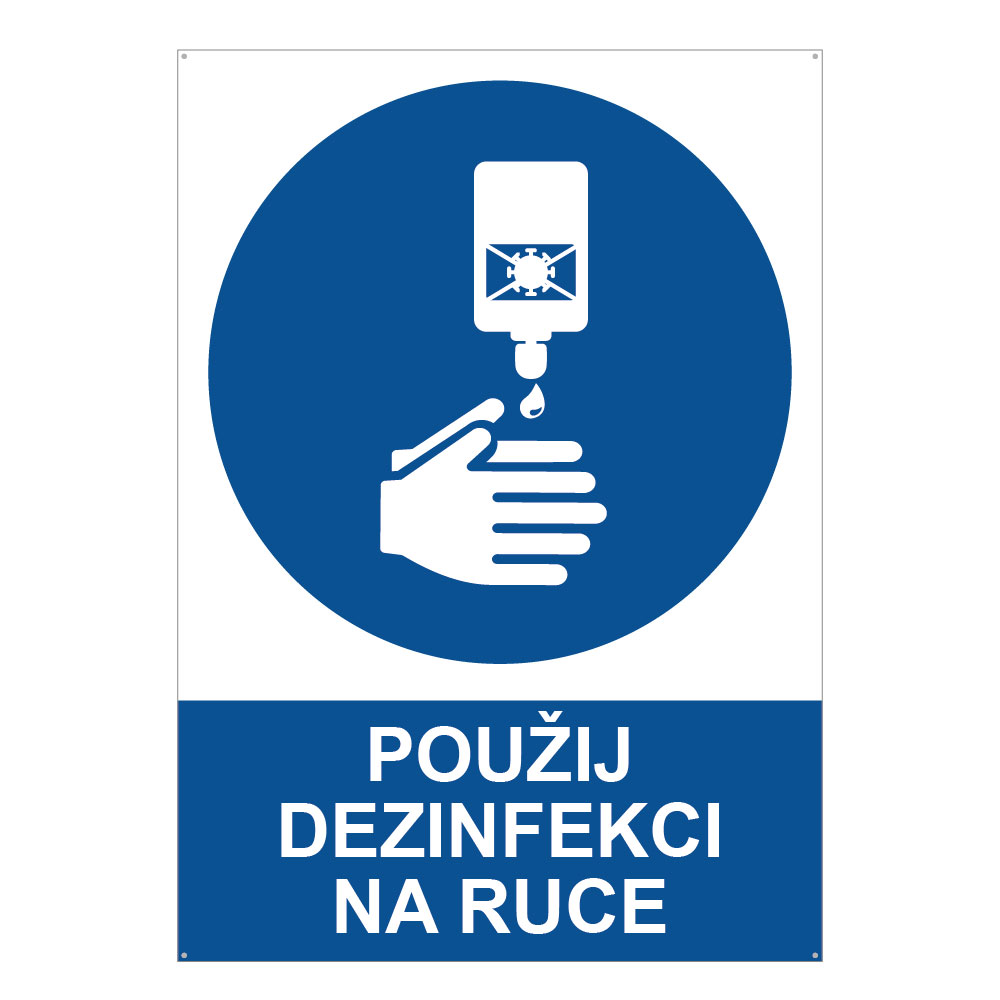 Použij dezinfekci na ruce - bezpečnostní tabulka s dírkami, 2 mm plast A4