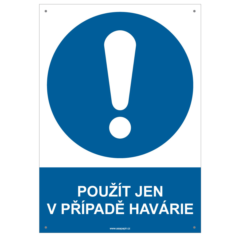 POUŽÍT JEN V PŘÍPADĚ HAVÁRIE - bezpečnostní tabulka s dírkami, plast A4, 2 mm