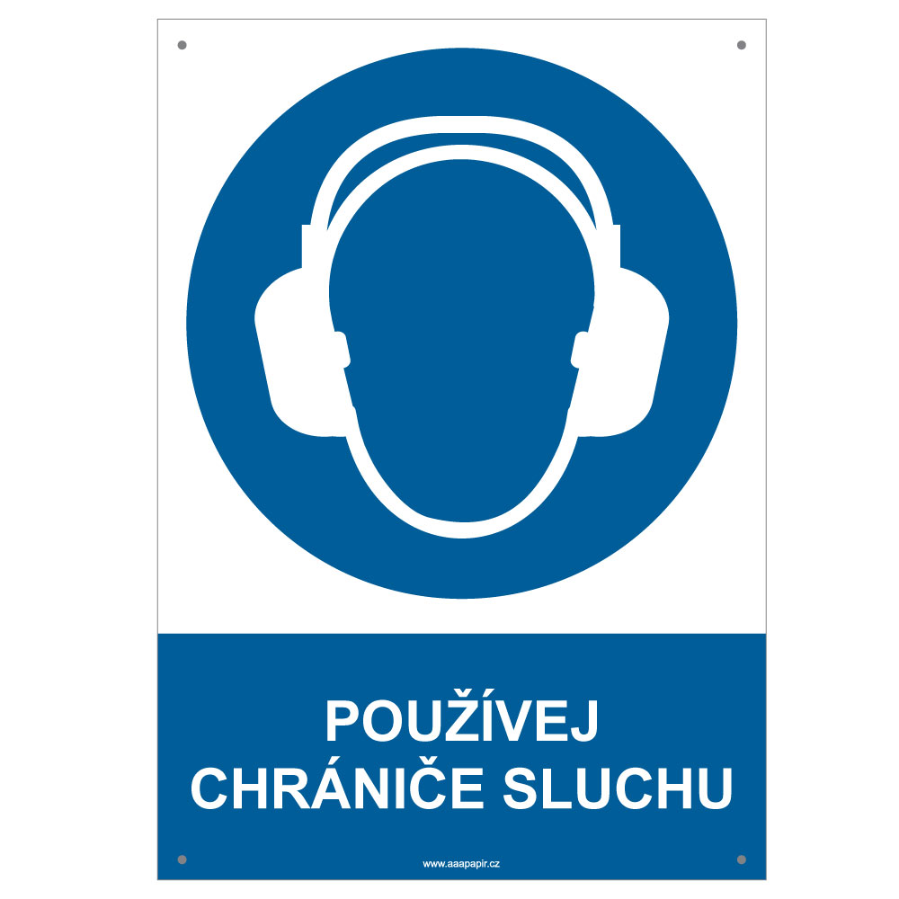 POUŽÍVEJ CHRÁNIČE SLUCHU - bezpečnostní tabulka s dírkami, plast A4, 2 mm