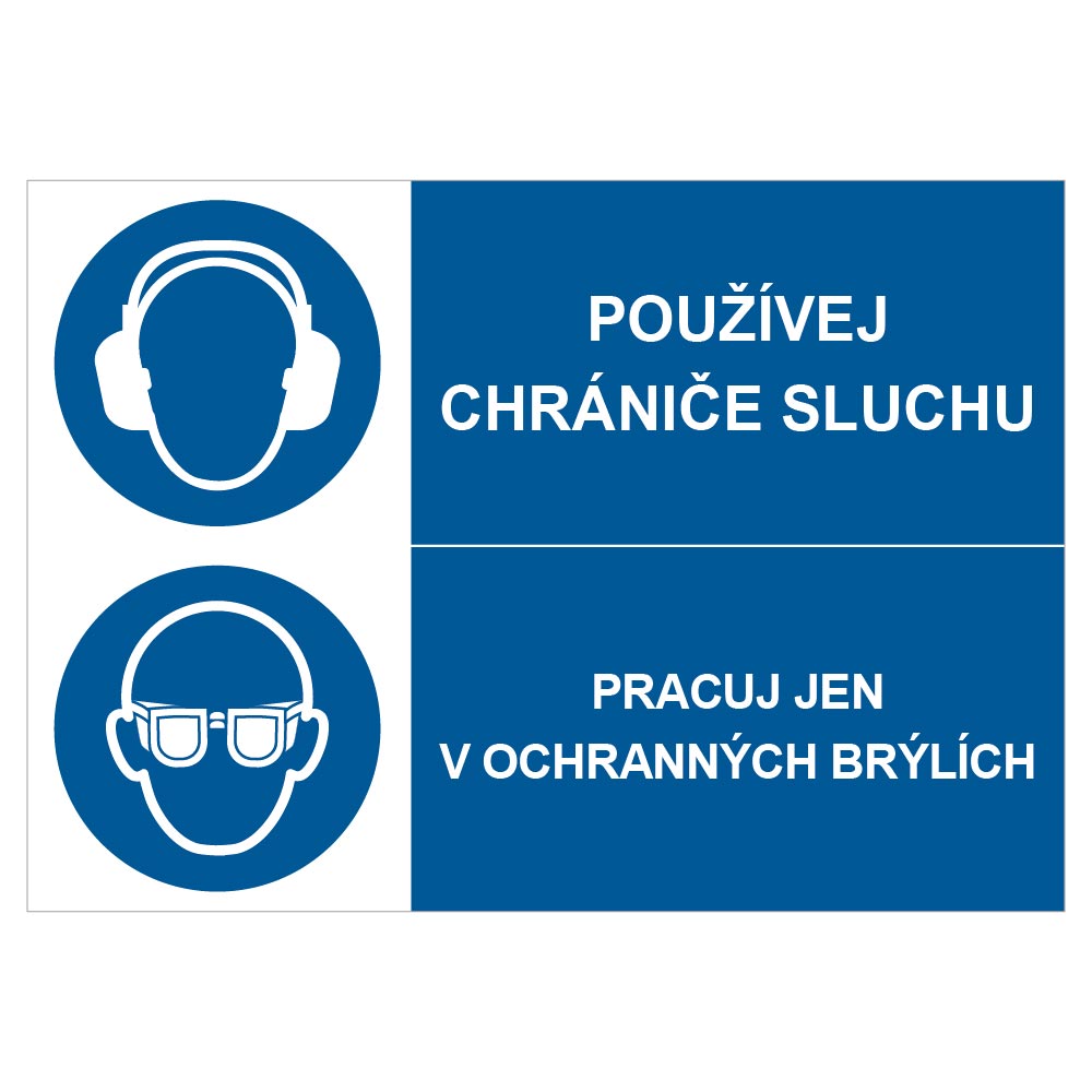 POUŽÍVEJ CHRÁNIČE SLUCHU - PRACUJ JEN V OCHRANNÝCH BRÝLÍCH, KOMBINACE, plast 2 mm, A5