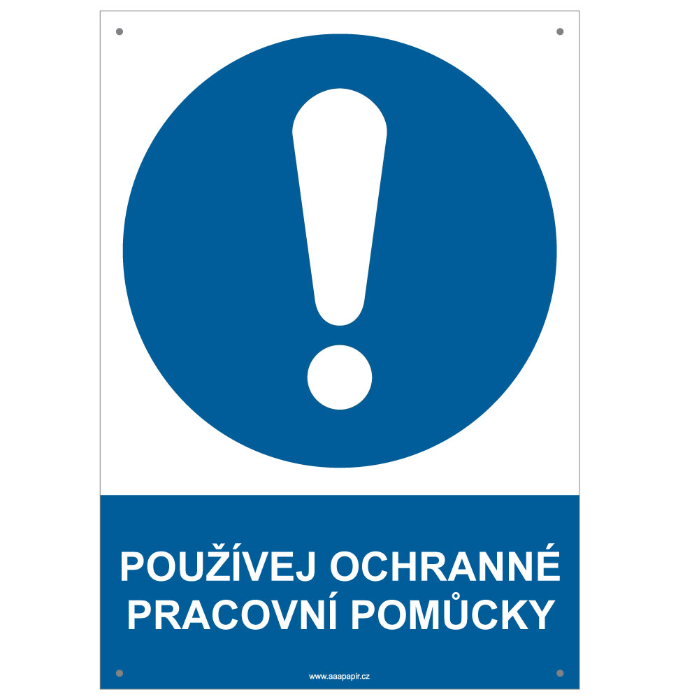 POUŽÍVEJ OCHRANNÉ PRACOVNÍ POMŮCKY - bezpečnostní tabulka s dírkami, plast A4, 2 mm