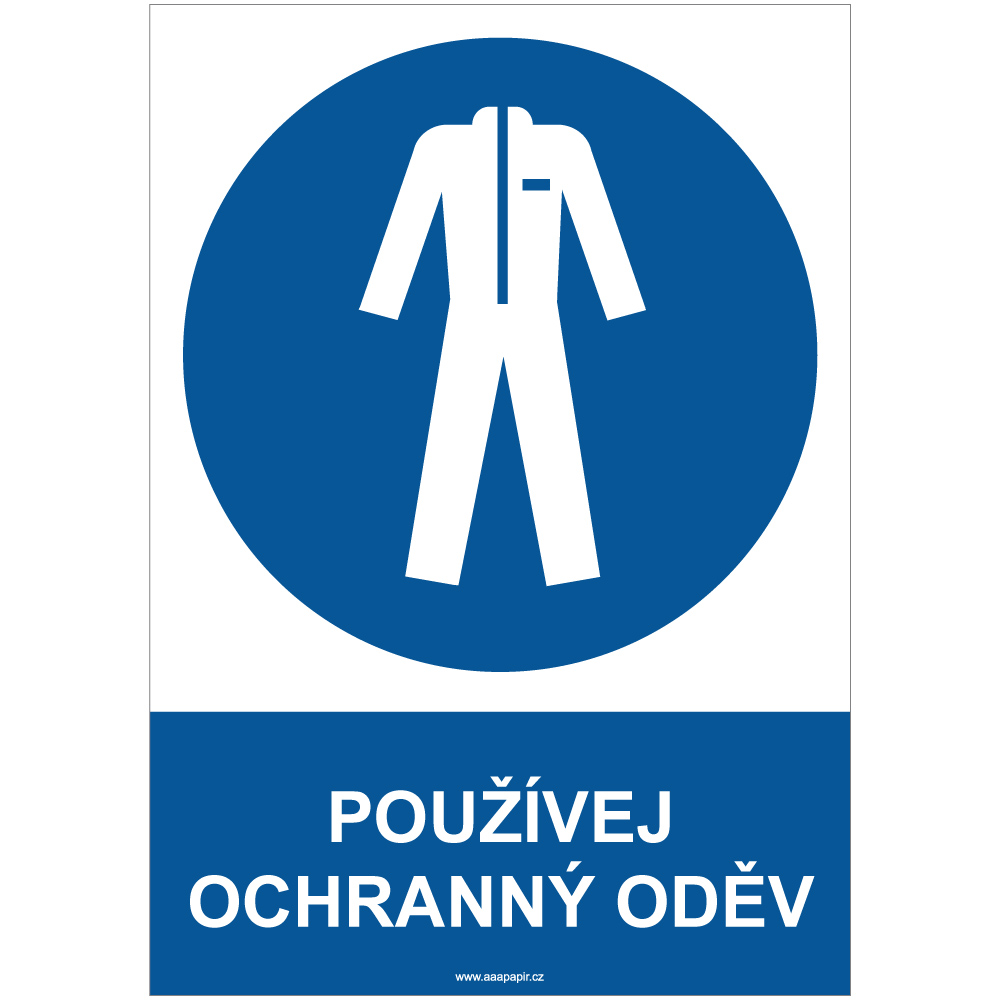 POUŽÍVEJ OCHRANNÝ ODĚV - bezpečnostní tabulka, plast A4, 0,5 mm