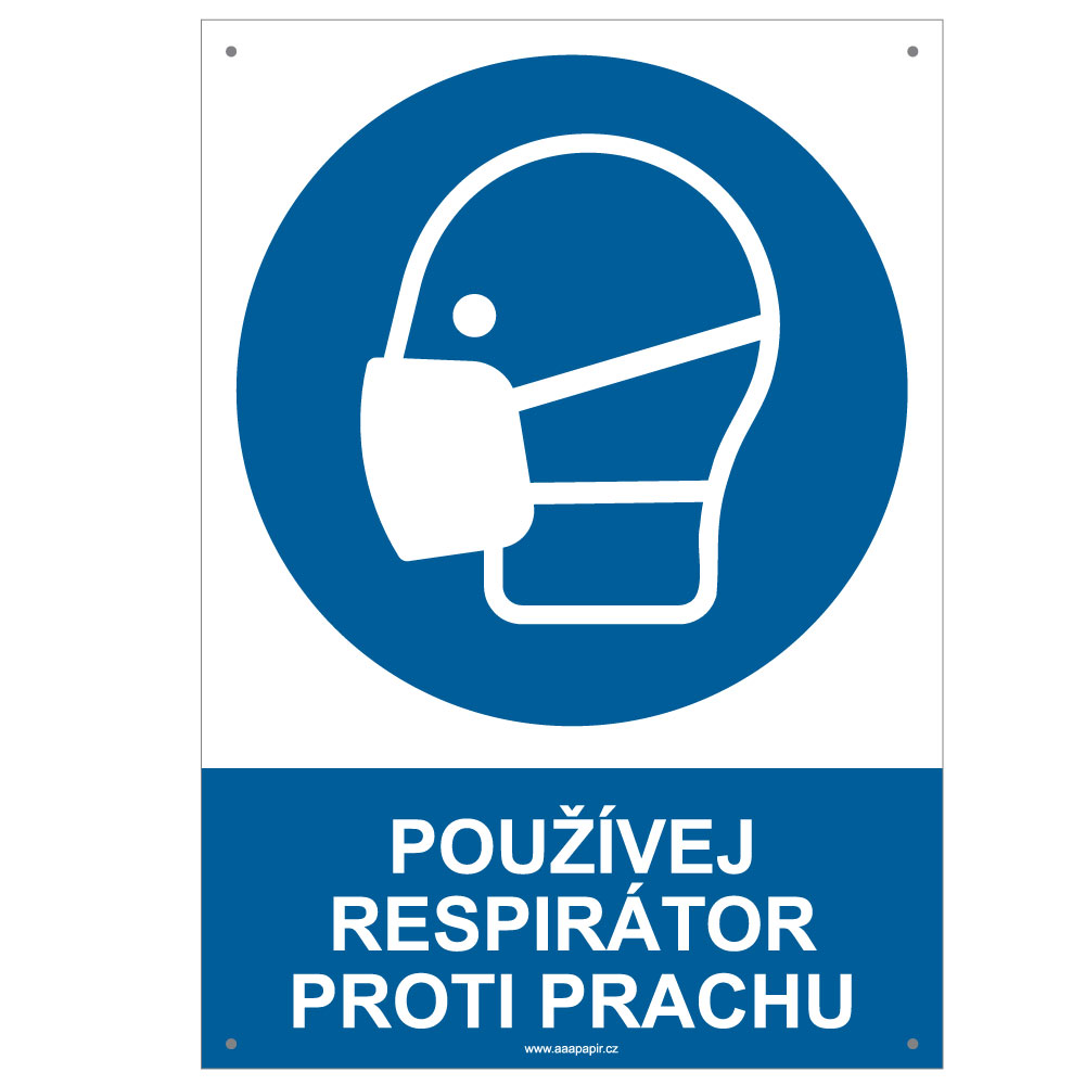 POUŽÍVEJ RESPIRÁTOR PROTI PRACHU - bezpečnostní tabulka s dírkami, plast A4, 2 mm