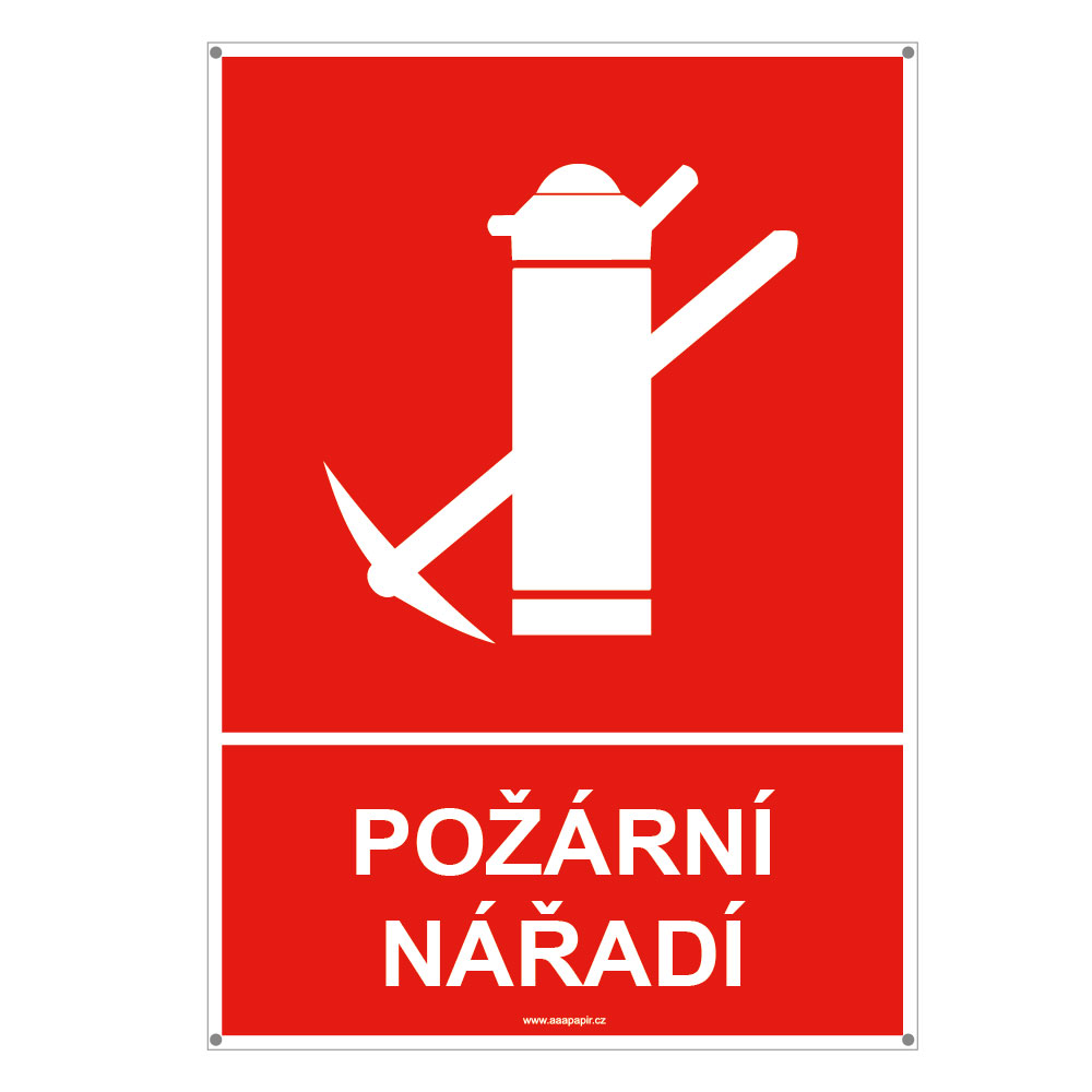 Požární nářadí s textem - bezpečnostní tabulka s dírkami, plast 2 mm 148x210 mm