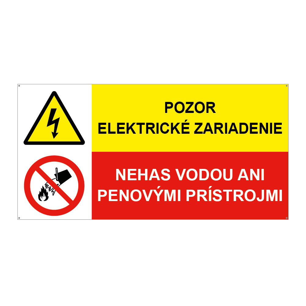 Pozor el. zariadenie-Nehas vodou, kombinácia, plast 2mm s dierkami-150x75mm