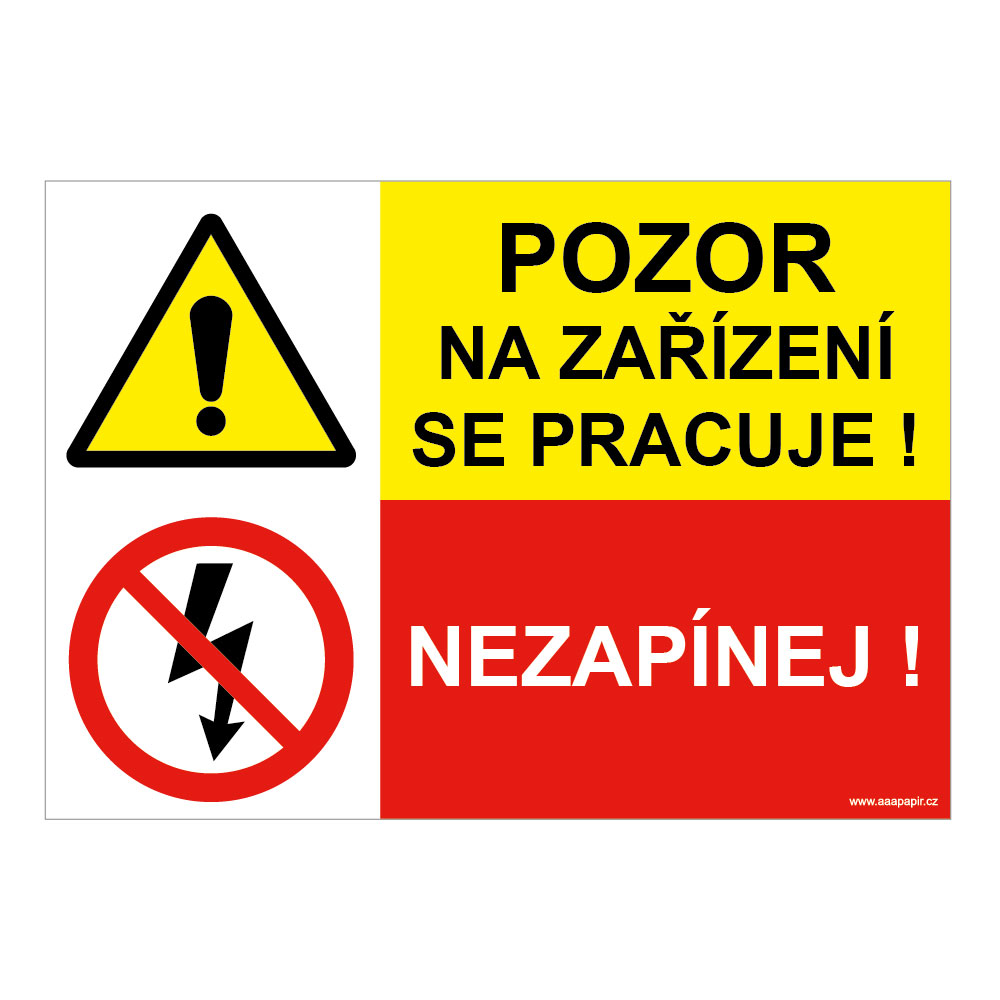 Pozor na zařízení se pracuje - nezapínej, kombinace, samolepka a4