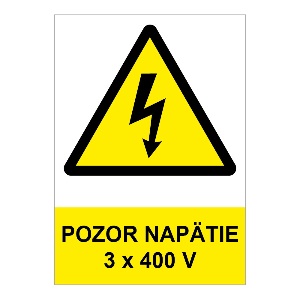 Pozor - napätie 3 x 400 V - bezpečnostná tabuľka, samolepka A4