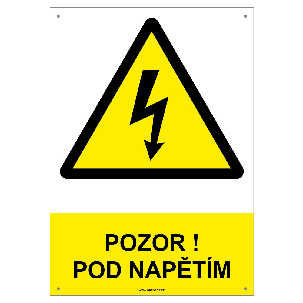 POZOR ! POD NAPĚTÍM - bezpečnostní tabulka s dírkami, plast A4, 2 mm