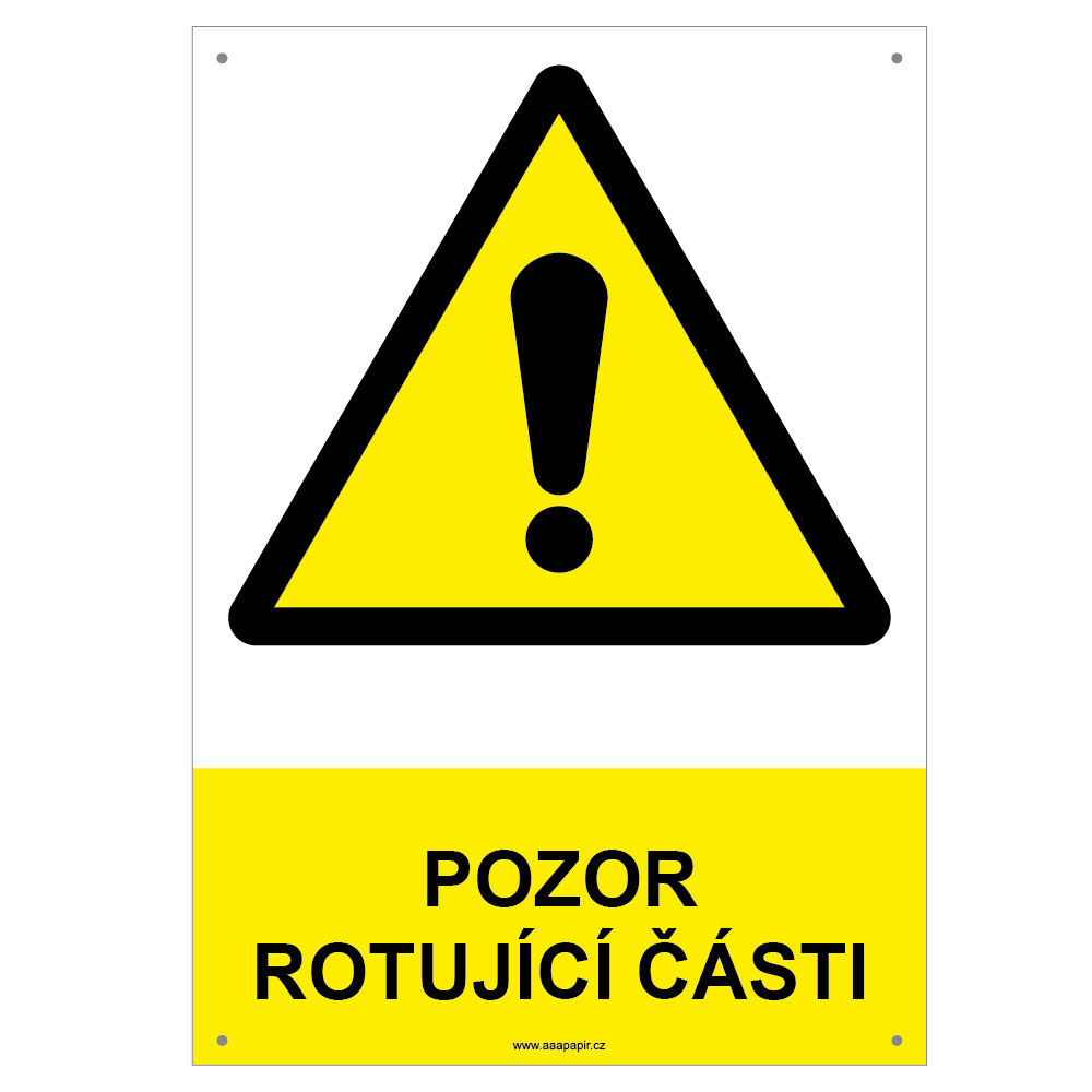 POZOR ROTUJÍCÍ ČÁSTI - bezpečnostní tabulka s dírkami, plast A4, 2 mm