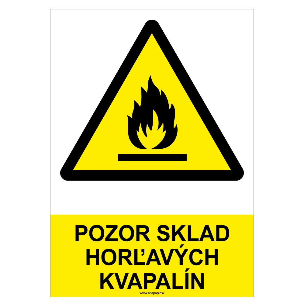 Pozor sklad horľavých kvapalín-bezpečnostná tabuľka, samolepka A4
