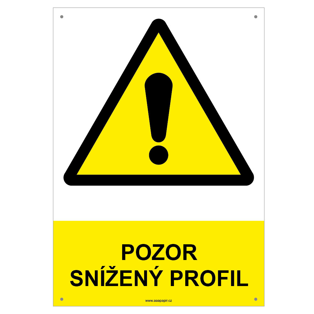POZOR SNÍŽENÝ PROFIL - bezpečnostní tabulka s dírkami, plast A4, 2 mm