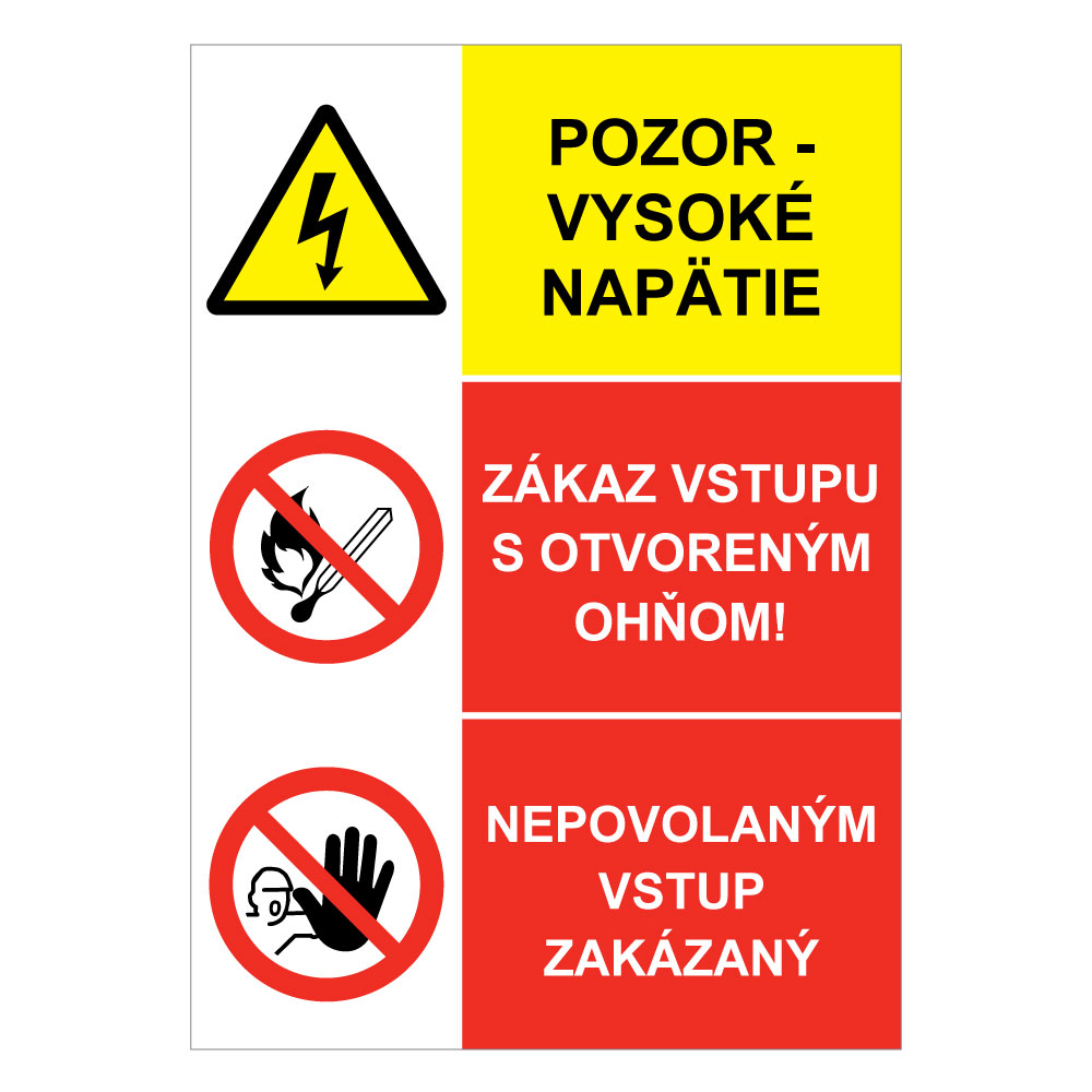 Pozor vysoké napätie-Zákaz vstupu- ??Nepovolaným vstup zakázaný, kombinácia, plast 2mm -210x297mm